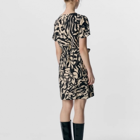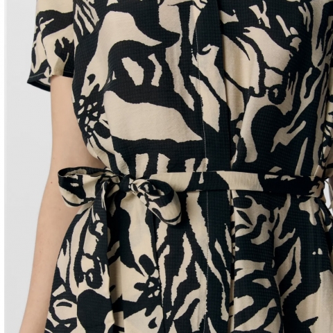Kleed in 73% lenzing ecovero en 27% polyamide.In black and sand.Met knoopsluiting en riem.Regular fit.